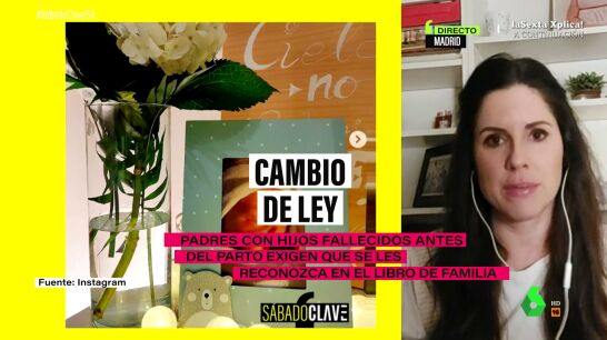 Actualmente, según explica en Sábado Clave, la ley establece que "para poder registrar a tu hijo en el Libro de Familia necesitas que el bebé haya nacido con vida". "Si ha nacido sin vida ya va a un apartado del Registro Civil que se llama legajos de abortos", explica, un nombre que considera "muy humillante" y "poco respetuoso". "Las familias no tenemos absolutamente nada. Administrativamente, nuestros hijos no han existido", denuncia.