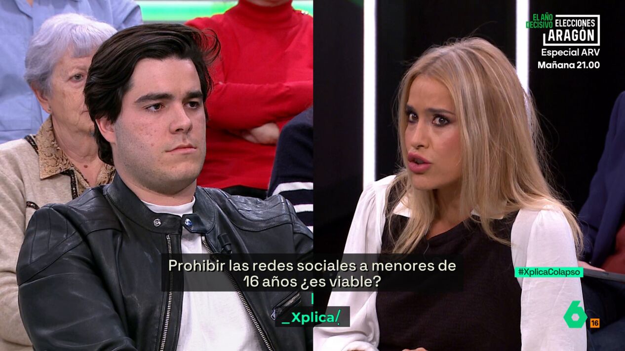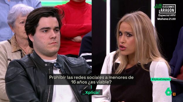 Afra Blanco se dirigió al emprendedor Jorge Branger para responder a su "argumento de la pérdida de libertad de los jóvenes" con la prohibición del uso de las redes sociales en menores de 16 años. "Si el argumento es precisamente esa pérdida de libertad sin límites de los jóvenes, entonces entiendo que tú defenderías que los supermercados vendieran Whisky a menores, entiendo que defenderás que los estancos vendan tabaco a chavales de 12 años, entiendo que defenderás incluso que niños y niñas puedan entrar a ver películas para adultos y pudieran coger incluso hasta un volante chavales de 12 años en nombre de la libertad". "Pero como esto es una auténtica barbaridad, tú lo sabes y yo lo sé, precisamente entendemos que la libertad de los menores sin protección no es libertad, es abandono", defendió.