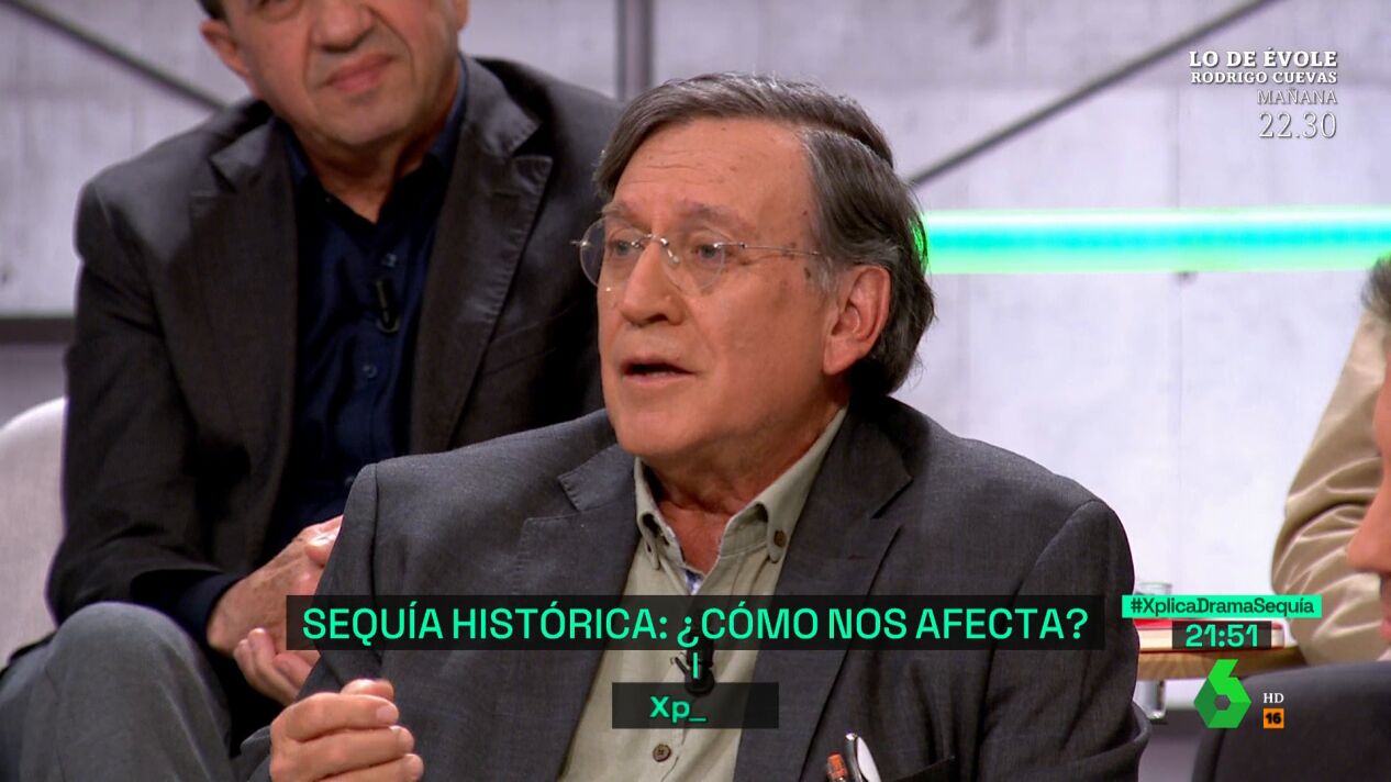 El escritor y naturalista, Joaquín Araujo, asegura que la sequía afecta a todo, pues todo está hecho a base de agua: "Todo ser vivo del que nos alimentamos es agua que se ha puesto de piey las cosas están siendo abatidas".