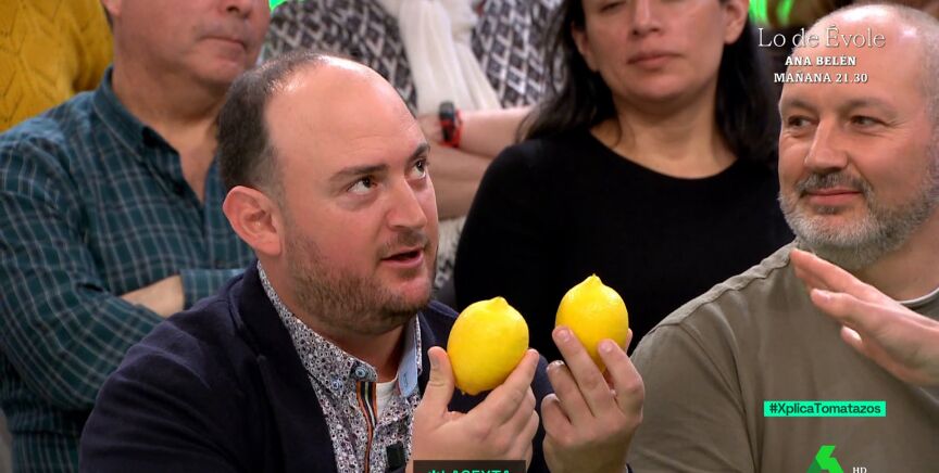 Pedro Gomáriz, agricultor de limones, muestra en laSexta Xplica dos limones ecológicos para explicar la diferencia de cómo se los pagan. "Aunque aparentemente son iguales, no lo son. Uno es perfecto y otro tiene un pequeño defecto", expresa el agricultor, a lo que añade: "El que es ideal y perfecto, al que llaman, 'premium', nos lo pagan a 15 céntimos, la mitad de lo que nos cuesta producirlo, y el que tiene el pequeño defecto no nos lo pagan, sino que nos cuesta dinero que se lo lleven, porque si lo dejamos en la finca, perdemos la cosecha del año siguiente".