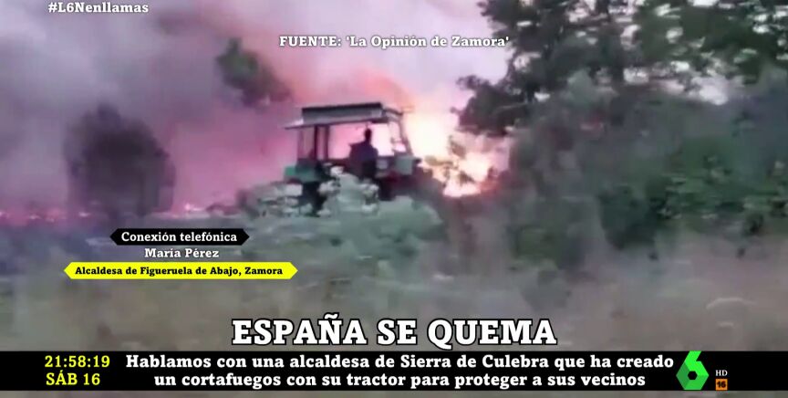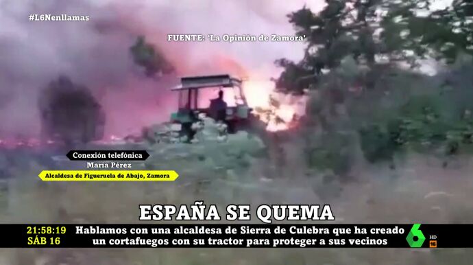 La alcaldesa de Figueruela de Abajo (Zamora), María Pérez, ha narrado en laSexta Noche su hazaña contra los fuegos que arrasan la Sierra de la Culebra: la mujer no dudó en subirse a su tractor para crear un cortafuegos que protegiera a sus vecinos, sin temer a las llamas.