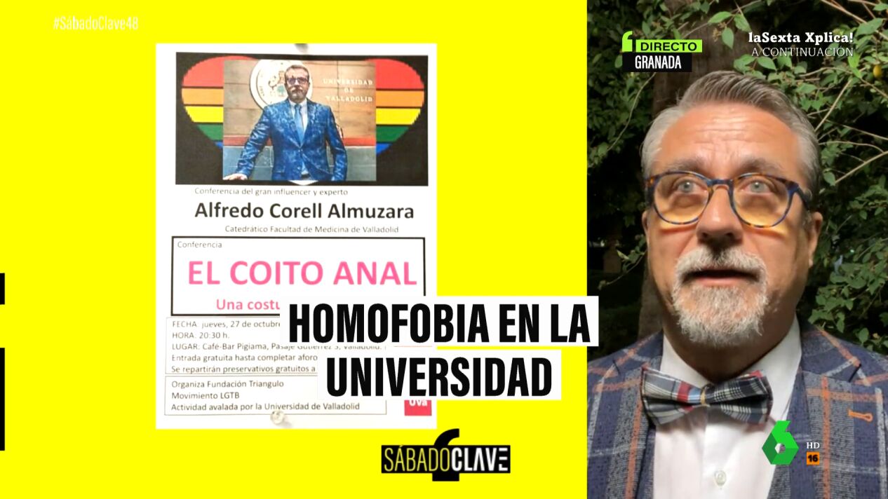Esta semana, el inmunólogo y catedrático Alfredo Corell sufrió un nuevo ataque homófobo en la Facultad de Medicina de la Universidad de Valladolid, con carteles que anunciaban una falsa conferencia de Corell llamada 'El coito anal, una costumbre saludable'.