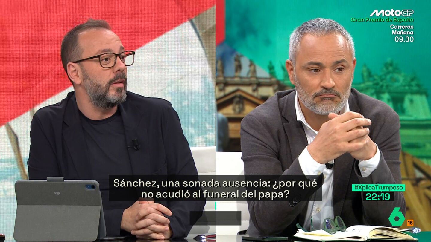 El periodista ha defendido en laSexta Xplica que "el que de verdad" tenía que estar en el funeral del papa es quien "la Constitución marca que tiene que estar representando al Estado", en referencia al rey Felipe VI.