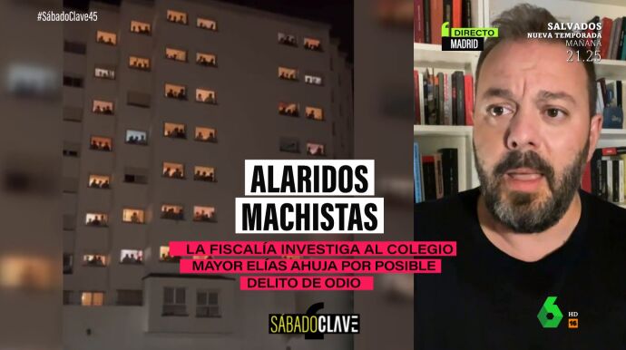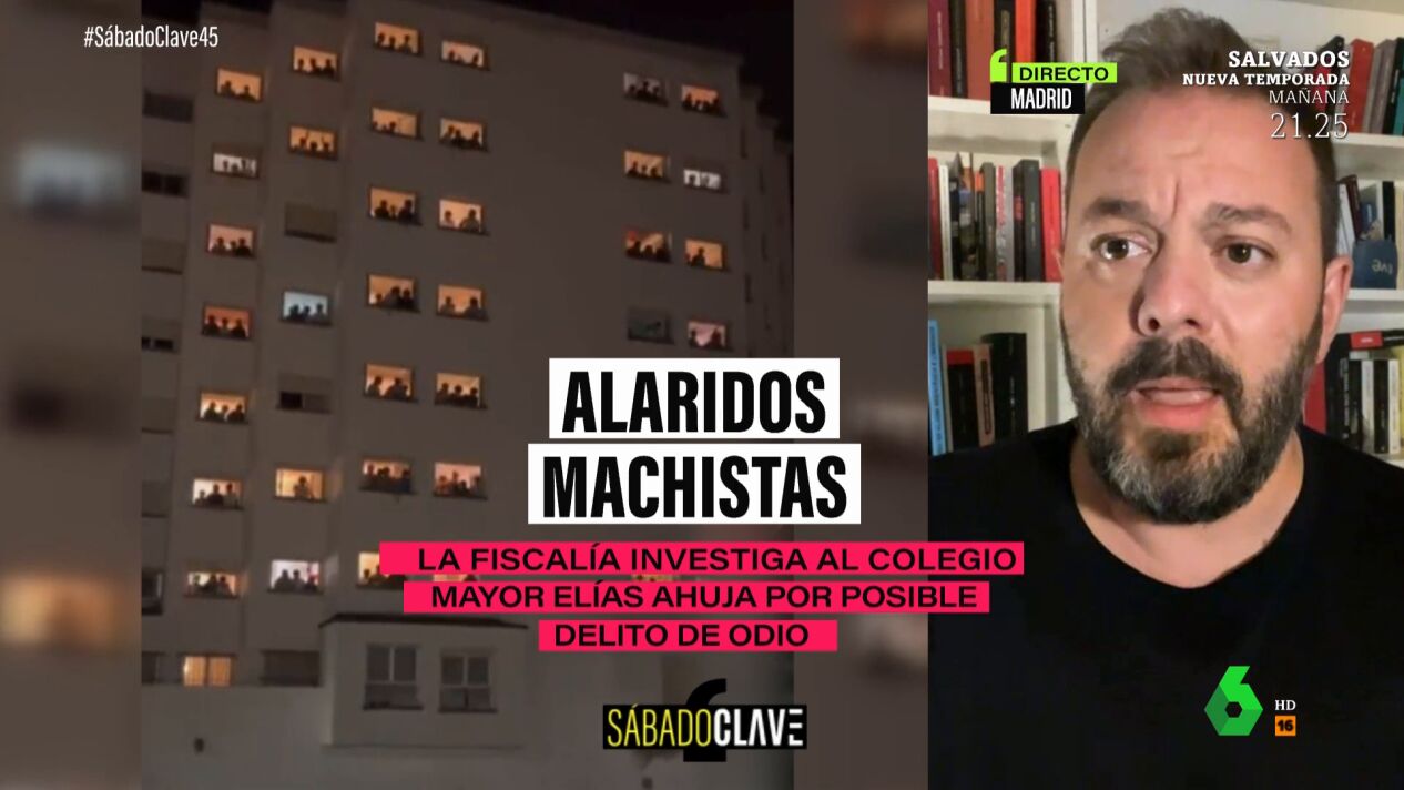 El periodista Antonio Maestre ha analizado en laSexta Noche una de las polémicas de la semana: los gritos machistas y misóginos que los alumnos de un colegio mayor de Madrid profirieron a sus compañeras de otro centro. Durante su intervención, ha querido poner el foco sobre las colegialas del Colegio Mayor Santa Mónica, muchas de las cuales han salido a defender a los chicos que las llamaron "putas" y "ninfómanas" a gritos.