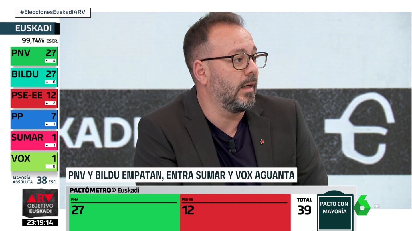 Así, ha subrayado que "entre Sumar y Podemos han perdido 15.000 votos y solo ha conseguido Sumar un escaño, y la candidata, Alba García, queda fuera". Puedes ver su análisis sobre los resultados de las elecciones del País Vasco en el vídeo principal que acompaña a la noticia.