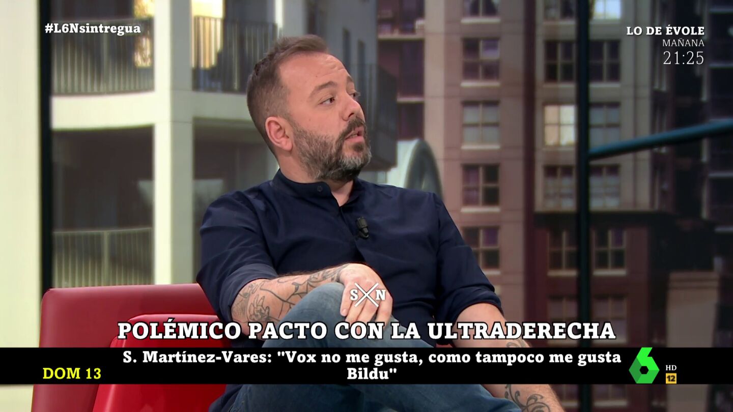En este sentido, el periodista ha afirmado que "cuando consideran que la izquierda es un enemigo demasiado fuerte, se echan en brazos del fascismo", tras lo que ha declarado que "Feijóo ya no puede mentir y decir que no va a meter a Abascal de vicepresidente del Gobierno si los números no dan". "Ya no puede engañar a los españoles", ha subrayado.