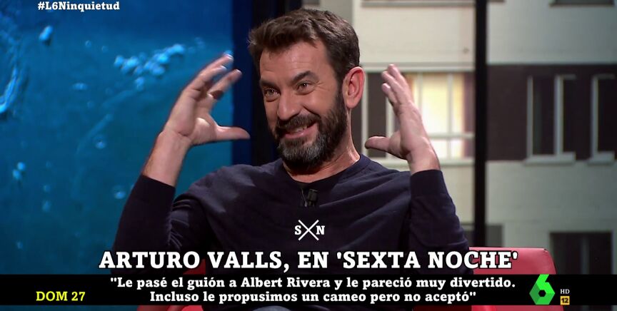 "Qué referente podía tener Quesada", bromea Arturo Valls en laSexta Noche, reconociendo que ese referente para Quesada es Albert Rivera, a quien llegó a dirigirse para ofrecerle aparecer en la película.