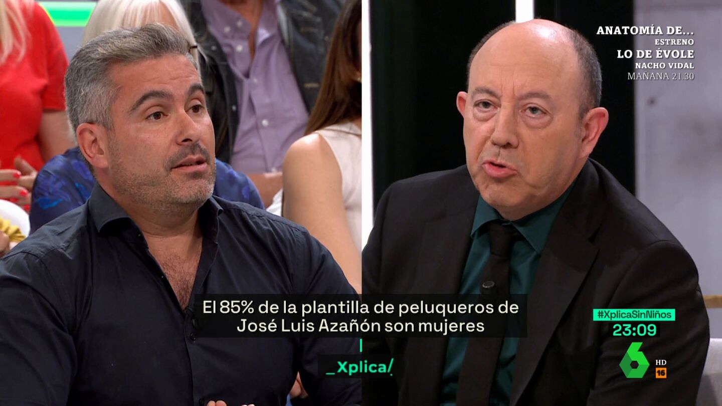 José Luis Azañón, propietario de una gran cadena de peluquerías, acudió la noche del sábado al plató de laSexta Xplica para participar en un debate sobre la natalidad en España. Azañón defendió tener varias empresas cuyas plantillas están compuestas por un 85 por ciento de mujeres, cifra que se eleva al 95 en el caso de las peluquerías.