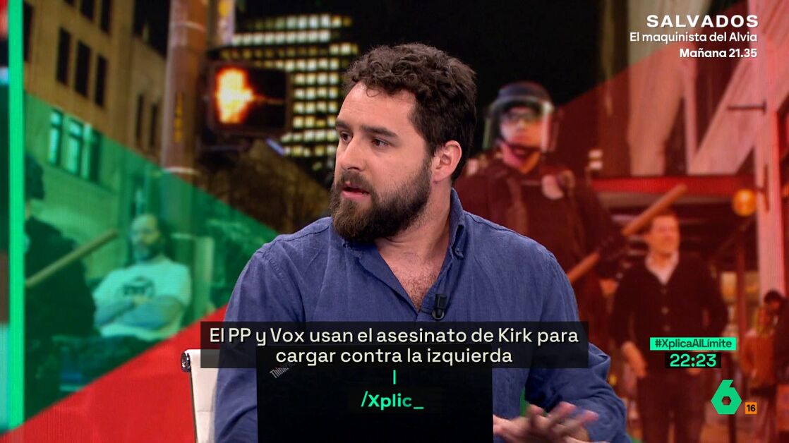 Blas Moreno confiesa en laSexta Xplica que "somos afortunados de estar en un continente en el que la política es más calmada y menos violenta": "La estadounidense es muy espectacular en el mal sentido".