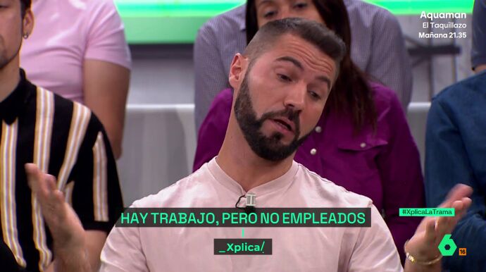 José Yélamo modera en el plató de laSexta Xplica un debate sobre la hostelería. "Vivimos un sistema económico en el que hay que ser realistas. No se incentiva trabajar, porque prácticamente cobran lo mismo en el paro", afirmó José Luis, empresario, en este vídeo, donde declaró: "Es muy duro cuando un trabajador viene y te dice que le faltan cuatro meses para cobrar el paro y eso es lo que quiere trabajar".