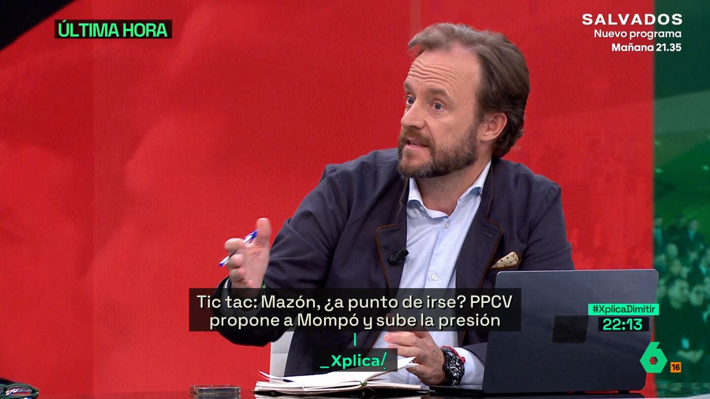 El periodista de 'ABC' afirmó en laSexta Xplica que Mazón "prefiere una salida más limpia con el adelanto electoral, pero Génova teme perder el poder en Valencia".
