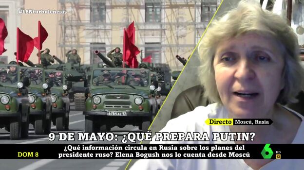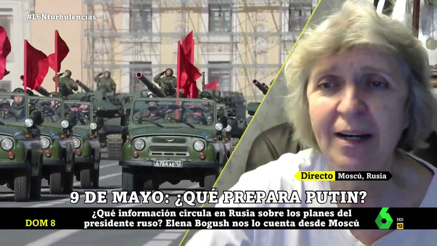 La historiadora rusa Elena Bogush ha analizado en laSexta Noche qué espera Rusia de este 9 de mayo. "Por primera vez esta fecha es alarmante, y es muy raro para nosotros, porque siempre fue el día de la victoria", ha aseverado la experta, que ha hablado en esta ocasión como una ciudadana más.