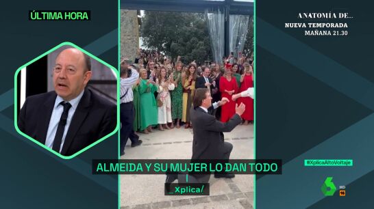 Gonzalo Bernardos hizo un análisis en laSexta Xplica sobre la boda de José Luis Martínez-Almeida y Teresa de Urquijo, señalando que refleja que "hay dos Españas": "Está la España casposa, que es la que sale de esta boda, y la España de muchísimas otras bodas que no se parecen en nada a esta", manifestó.