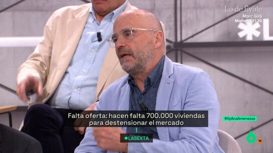 El economista narra en laSexta Xplica que "hace dos días salió el informe del Fondo Monetario Internacional y entre sus recomendaciones incluían: primero, que deroguen de una vez la ley de la vivienda, que lo único que está haciendo es retirar oferta del mercado, y segundo, que tengan la bondad de aportar suelo y facilitar los trámites".