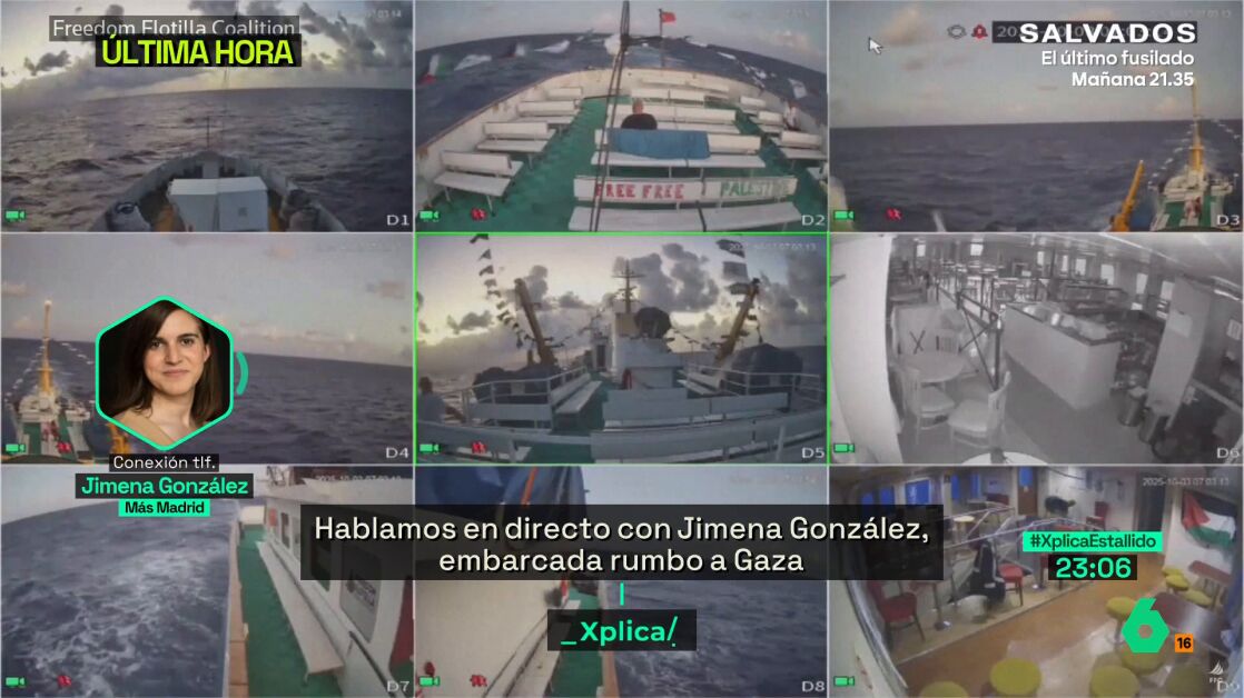La diputada de Más Madrid en la Asamblea de Madrid, Jimena González, ha atendido a laSexta Xplica vía telefónica desde una segunda Flotilla que se acerca a Gaza.