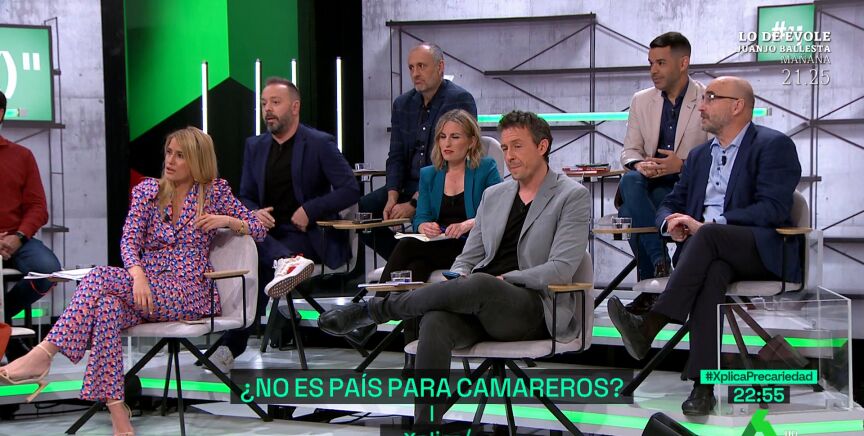 El periodista y escritor se mostró visiblemente indignado cuando el economista desveló que trabaja "65 ó 70" horas semanales, no le importaría que fueran más y además defendió que hay más personas en su situación. "El que quiere trabajar 70 horas es porque está calentito", le reprochó Maestre.