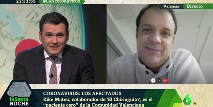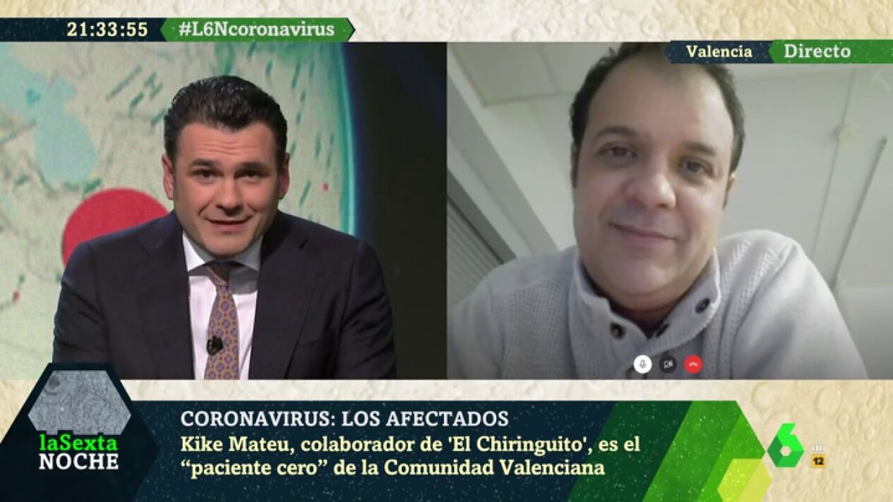 Kike Mateu, periodista y colaborador en El Chiringuito, es el 'paciente cero' del coronavirus en la Comunidad Valenciana. Reconoce encontrarse "perfectamente" y manda un mensaje tranquilizador, poniendo el foco del problema del coronavirus en el contagio, no en los síntomas.