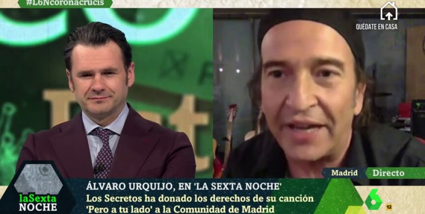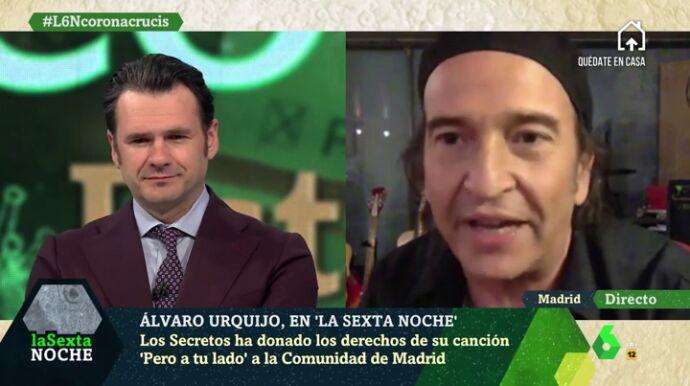 "Ella vio que era una causa justa, y que todo lo que pudiéramos hacer los músicos para ayudar es poco”, ha explicado Álvaro Urquijo, cantante y compositor, en laSexta Noche, que también ha contado cómo está viviendo esta situación de aislamiento: "Honastemente, creo que somos privilegiados los que podemos trabajar en casa, y que luego nos pasamos 200 días fuera".