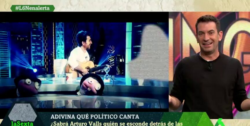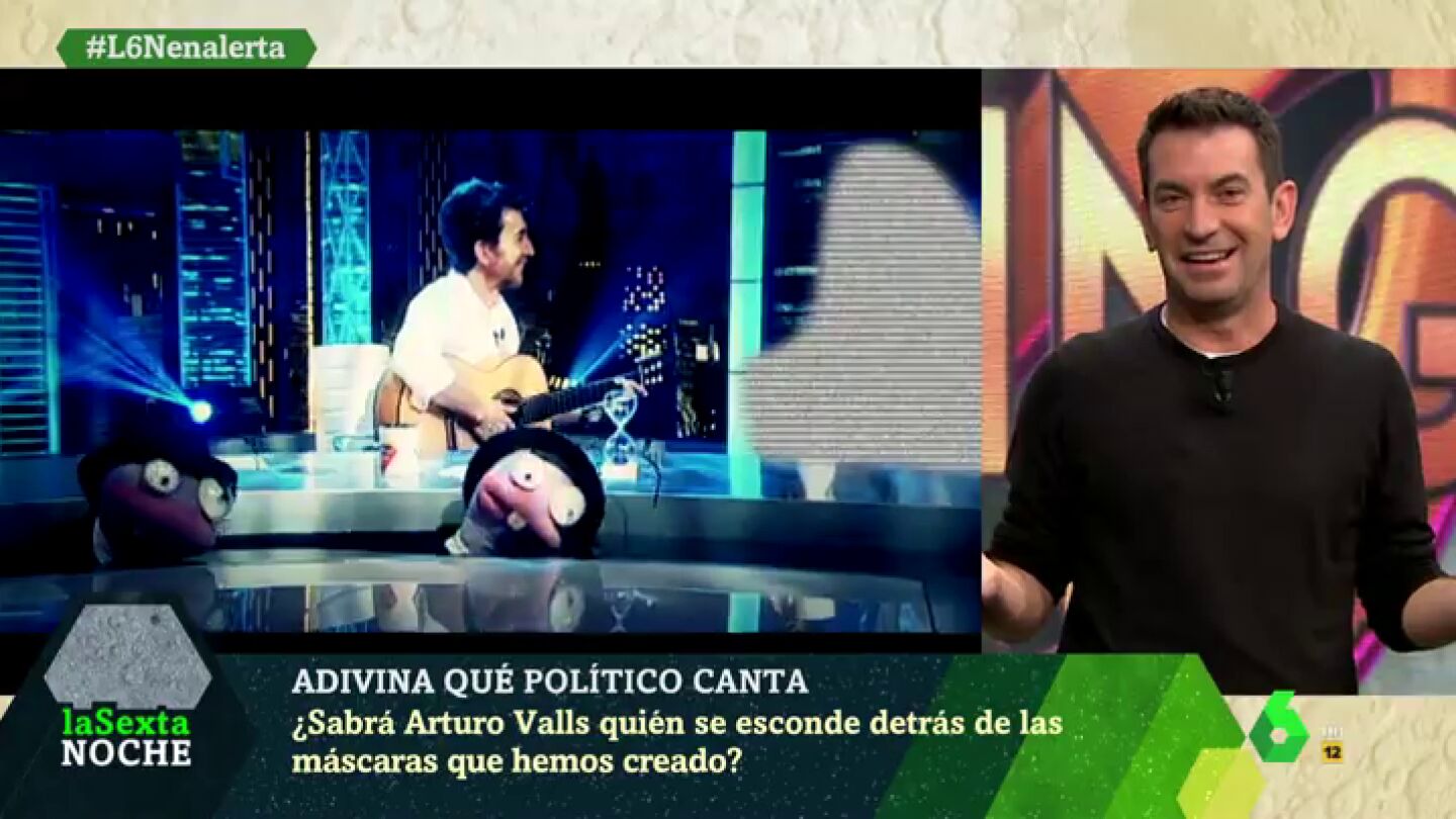 Con motivo del estreno, laSexta Noche ha sometido a Arturo Valls a un juego en el que debe descubrir el político oculto detrás de varias actuaciones musicales. Descubre en el vídeo qué tal se le ha dado.