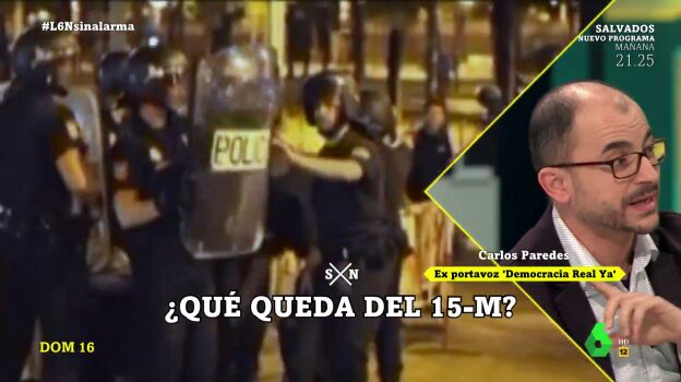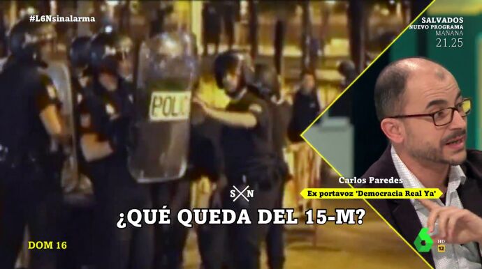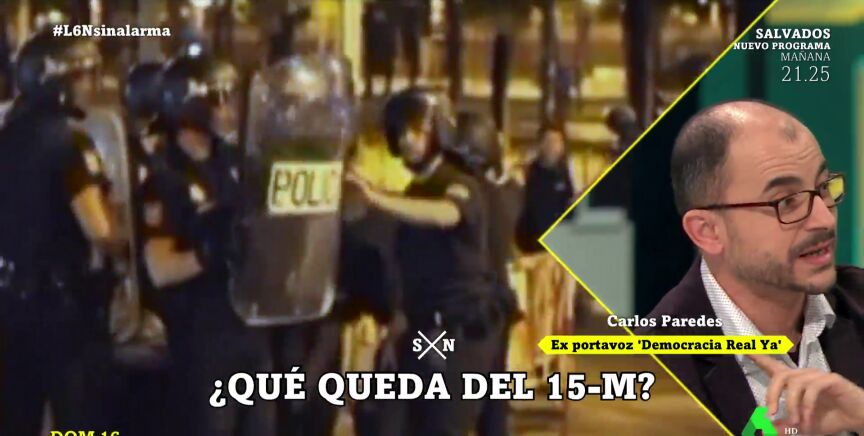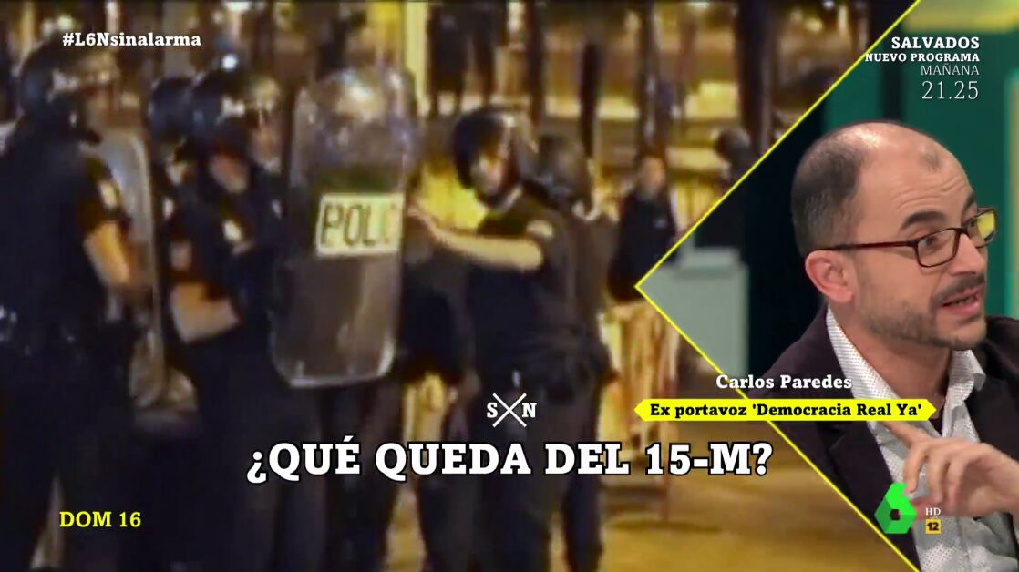 El exportavoz de Democracia Real Ya, Carlos Paredes, ha estado en laSexta Noche recordando el 15M cuando se cumplen diez años desde que se produjo. Y durante el programa, también ha querido recordar lo que vivió en Atocha con las cargas de la policía tras el Rodea el Congreso de 2012.