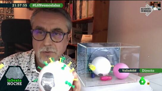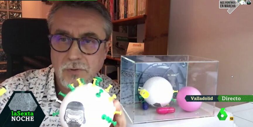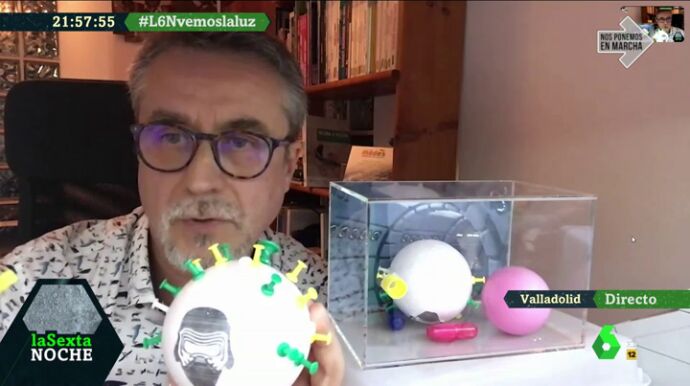 Así, el inmunólogo ha explicado con ayuda de un 'coronavirus' y una 'célula' hecha manualmente cómo haber pasado un resfriado puede protegernos del coronavirus. "Tenemos un coronavirus. Los virus no tienen capacidad de replicarse fuera de nuestras células, sino que tienen que entrar dentro de una célula", ha indicado Corell.