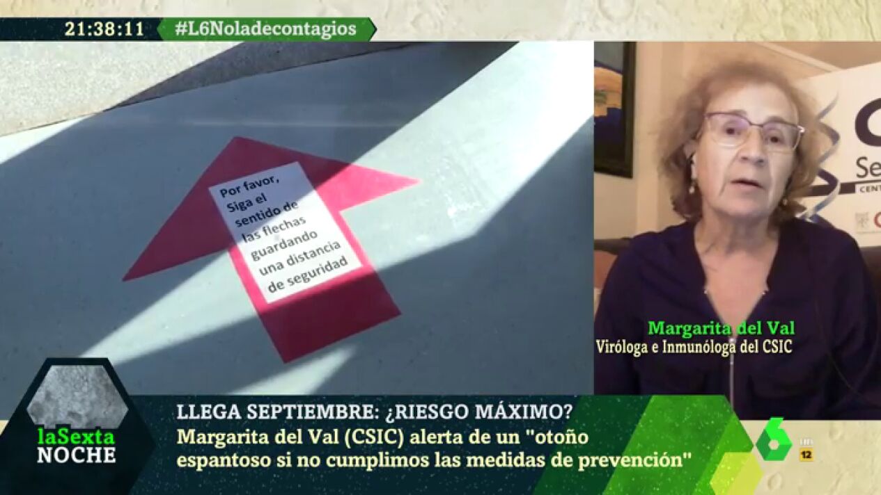 La vuelta al trabajo tras las vacaciones tiene que ser "cuidadosa". Así lo ha advertido la investigadora del CSIC Margarita del Val en laSexta Noche, donde ha lanzado una petición a quienes se incorporan ahora a sus puestos.