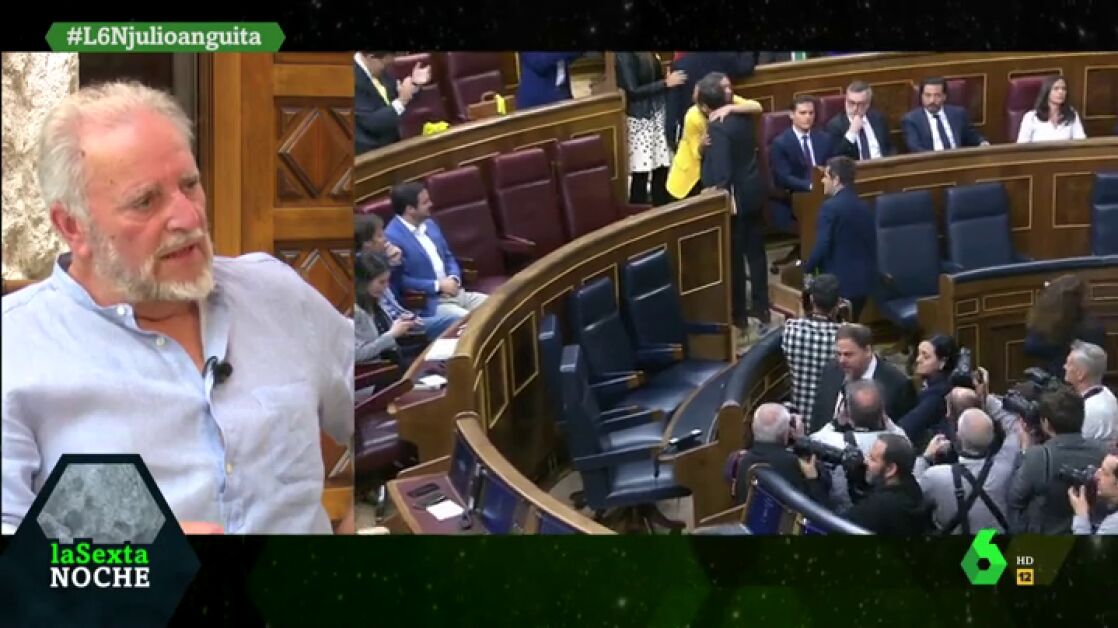 Julio Anguita defiende que "no han sido condenados todavía" por lo que "lo que se ha hecho con ellos es una auténtica indignidad democrática". "Si ustedes creen que estos señores tienen que ser juzgados está muy bien, pidan un suplicatorio y entonces el Congreso dirá que sí", defiende el expolítico.