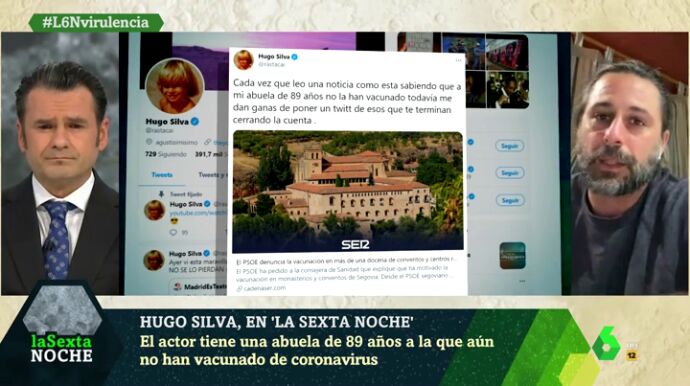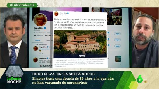 Silva ha contado en laSexta Noche que su abuela, que "vive en la Comunidad de Madrid", sigue sin recibir la vacuna, pese a tener 89 años. "Y como mi abuela, un montón de gente. Ya no es el tema de los problemas que ha habido con las vacunas, pero es muy insultante que haya gente que se cuele", ha denunciado, tras lo que ha añadido: "Hay un protocolo hecho por expertos y el que se salte el protocolo es un jeta y punto".