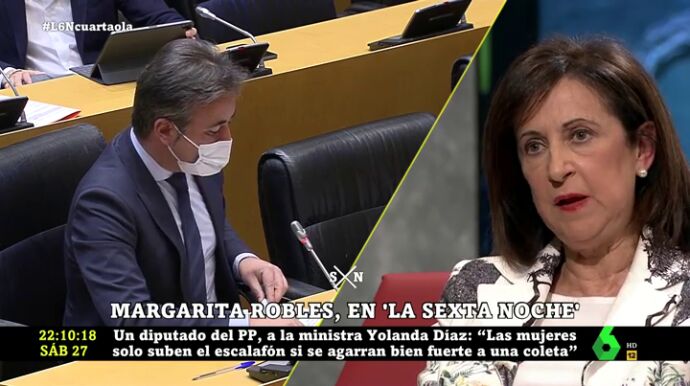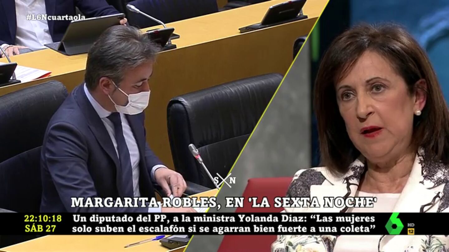 La ministra de Defensa ha dicho sentirse "absolutamente ofendida" por el ataque machista de un diputado del PP a Díaz. "Estos comentarios son inaceptables y el PP no debería tolerarlos", ha manifestado.