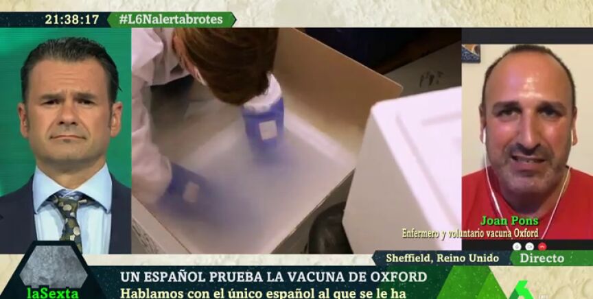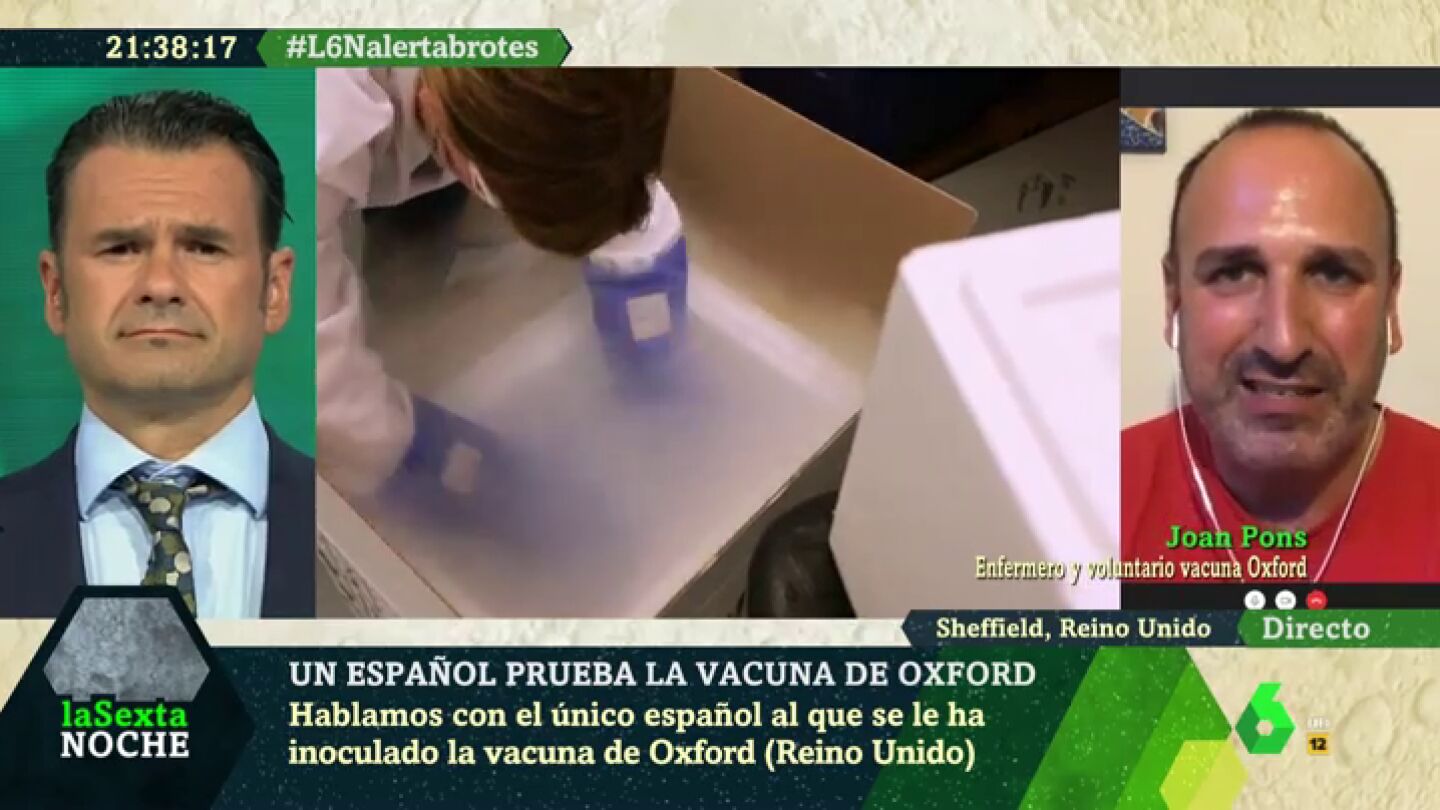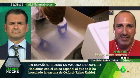 Joan Pons, el único español que ha probado la vacuna de Oxford (Reino Unido), ha asegurado en la Sexta Noche que "hay mucha esperanza en la vacuna porque, de momento, es segura y tiene doble protección". "Hace falta saber la llamada del millón de dólares y es si es eficaz", ha apostillado el enfermero español residente en Reino Unido.