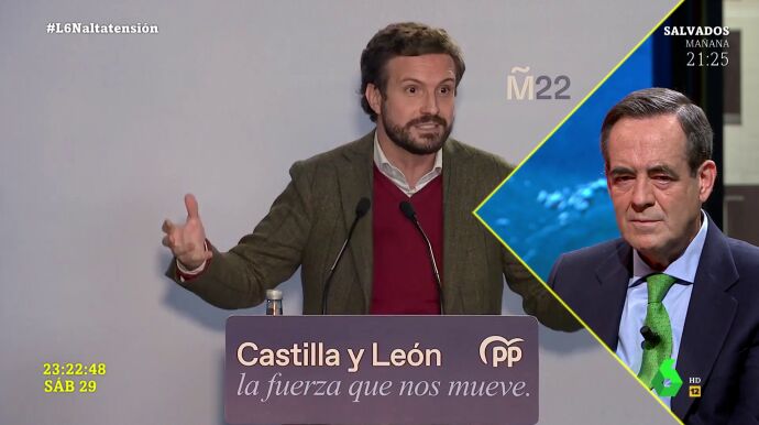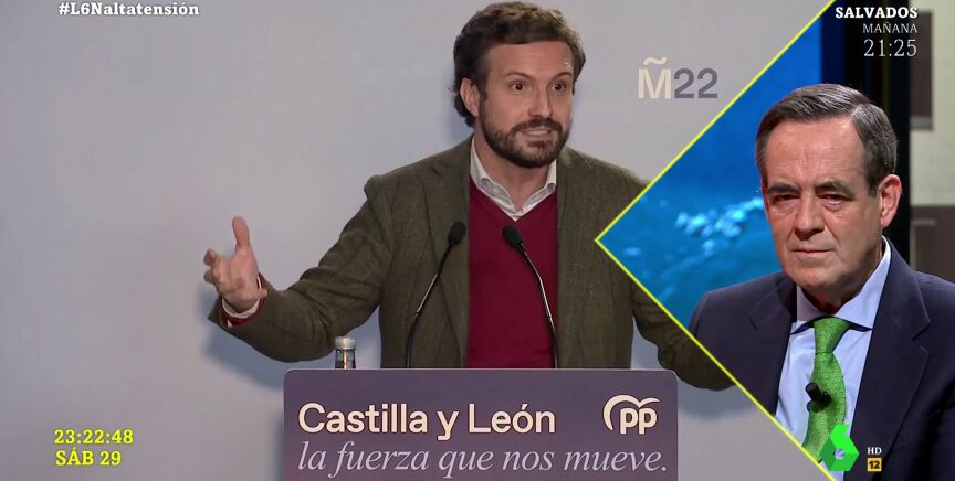 José Bono reconoce que Pablo Casado es "buena gente e inteligente", aunque sí que le ve "nervioso" por las elecciones de Castilla y León. En laSexta Noche, Bono afirma ver "nervioso" al líder de los populares.