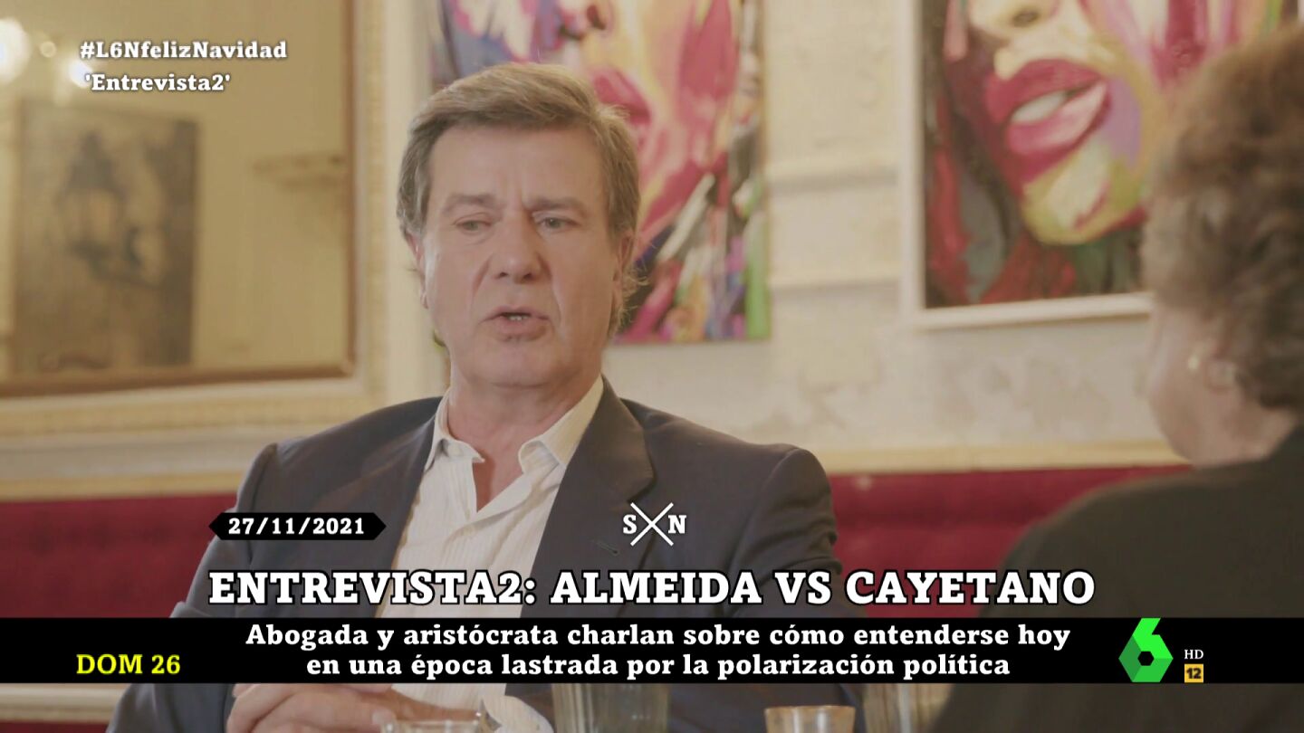 Cayetano Martínez de Irujo habló abiertamente con Cristina Almeida a mediados de noviembre de los partidos a los que ha votado que, según considera, "son los que han hecho crecer España y que estemos donde estamos hoy en día". "Los extremos hay que quitarlos", defendió.