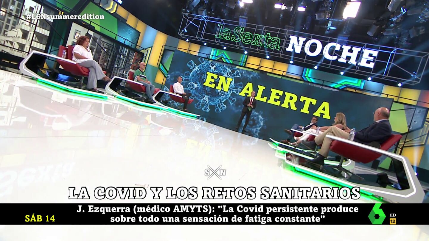 "El COVID persistente está generando ya un problema importante", advierte el doctor Julián Ezquerra en laSexta Noche. El secretario general de AMYTS cita el caso de una compañera sanitaria que lleva ya casi 18 meses de baja por este motivo, que en su momento tuvo el COVID-19 de forma asintomática y ahora sufre "un cuadro parecido a lo que es la fibromialgia".
