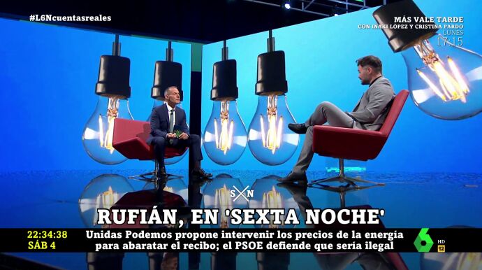 En su entrevista en laSexta Noche, Rufián traslada una medida de ERC para todos aquellos partidos políticos que quieran considerarla: "El Gobierno aproveche el fin de las concesiones administrativas de las centrales hidroeléctricas para limitar los beneficios de esas eléctricas mediante una figura jurídica ya reconocida, que es el beneficio racional".