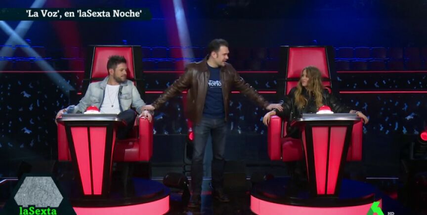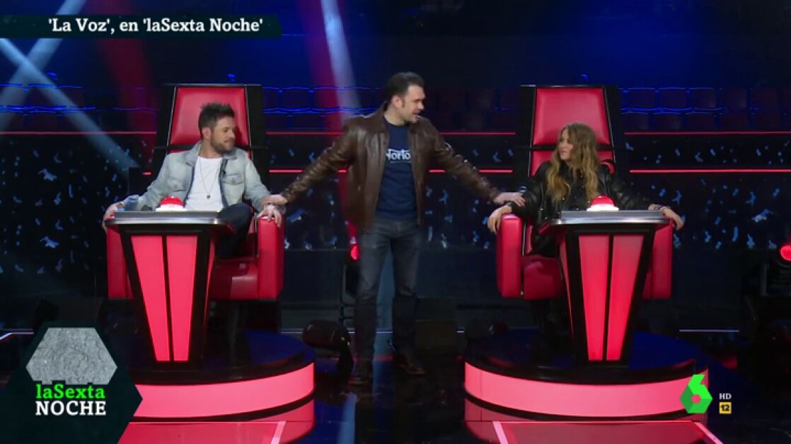 La mitad del juradode La Vozse ha girado conIñaki López. El presentador de laSexta Noche ha visitado a Paulina Rubio y Pablo Lópezpara felicitarles por el éxito que están teniendo en esta nueva edición del talent show.