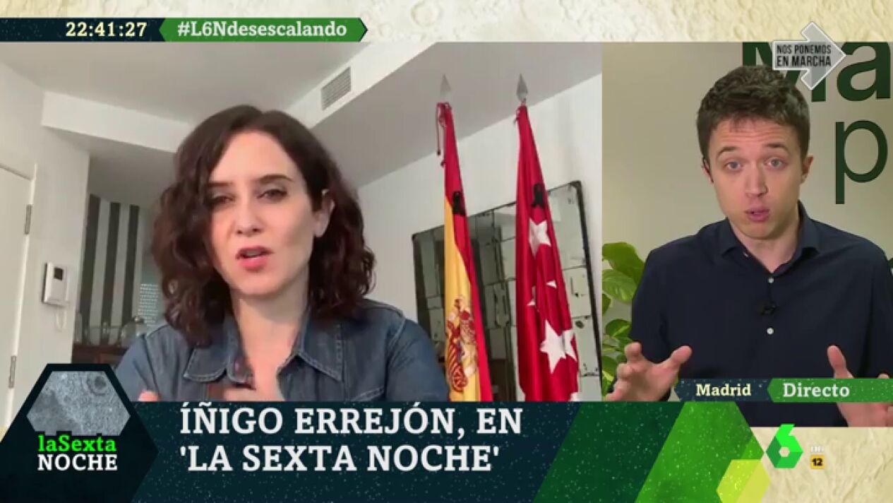 El líder de Más País, Íñigo Errejón, ha defendido en laSexta Noche que "es necesario mantener las medidas de confinamiento" porque "está dando frutos" y se ha mostrado muy crítico en laSexta Noche con la gestión del gobierno de la Comunidad de Madrid.