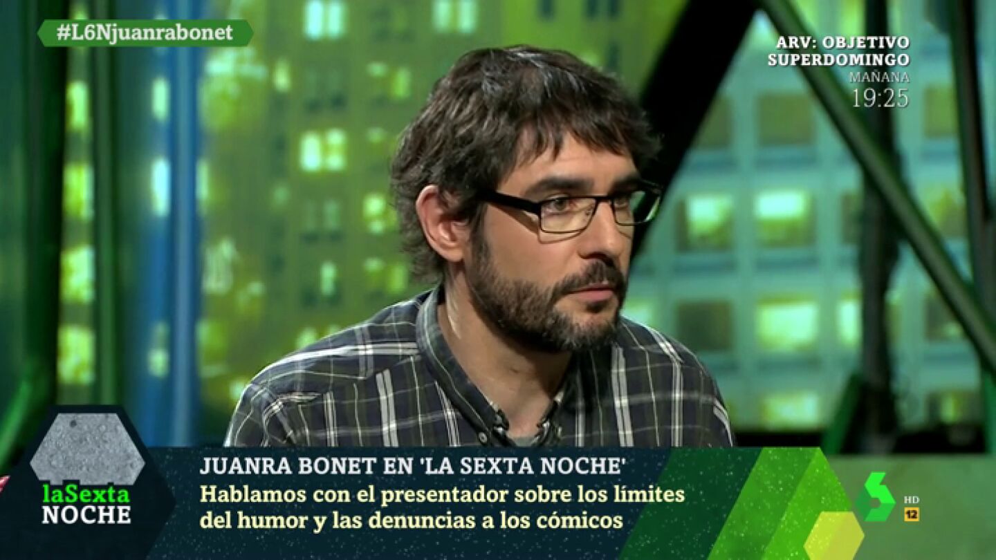 Juanra Bonet ha defendido en laSexta Noche la comedia: "El humor es lo mejor, sirve para todo". Además, ha apuntado que los problemas judiciales por hacer humor forman parte de algo pasajero: "Creo que esto va a acabar pronto, es una moda".