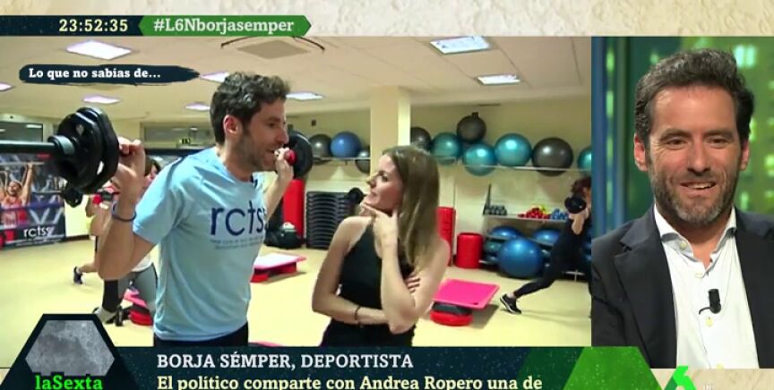 El portavoz del Partido Popular en el Parlamento vasco, Borja Sémper, ha llevado a Andrea Ropero a una clase de 'body pump' de un club de tenis de San Sebastián. Mientras ha hecho ejercicio, ha respondido a las preguntas de la periodista.