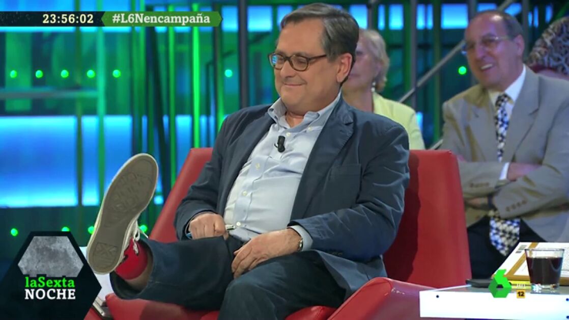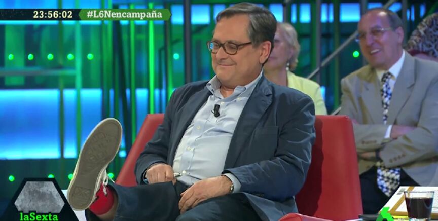 Con mucho humor, Marhuenda ha enseñado como llevaba puestos los calcetines rojos del presidente del Gobierno: "Sabes que a diferencias de otros neo-Sanchistas yo siempre he defendido a Sánchez desde la discrepancia".