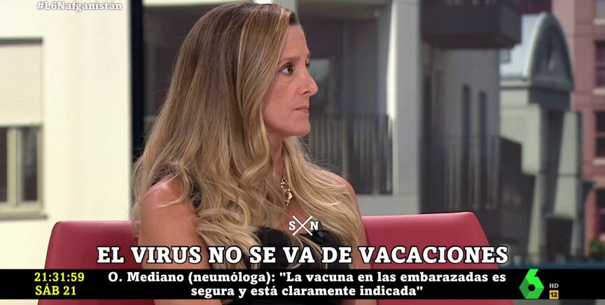 "La vacuna en la embarazada es muy segura y está claramente indicada". Es el mensaje que la doctora Olga Mediano ha enviado a las mujeres en estado de gestación desde el plató de laSexta Noche, donde ha advertido de que tienen "más riesgo de tener enfermedad grave" y "de acabar en ventilación mecánica".