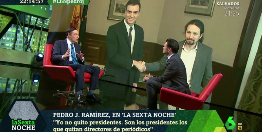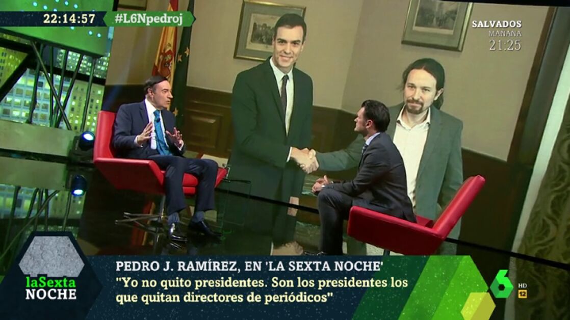"Pegué un respingo cuando Pedro Sánchez le dijo a Ferreras que él no podría dormir si hubiera un gobierno con ministros de Podemos", ha recordado Pedro J. Ramírez, que en aquel momento pensó que Sánchez "había quemado sus naves para siempre". Sin embargo, ahora se pregunta: "¿Cómo es posible que lo que hace dos meses no le dejaría dormir hoy es 'imprescindible'?".