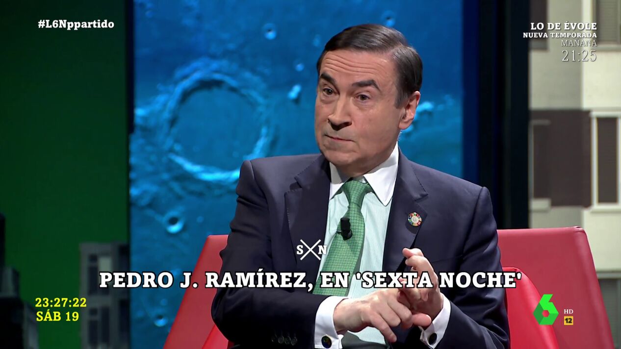 Pedro J. Ramírez ha expresado su opinión en laSexta Noche sobre las protestas frente a Génova: "El gesto en sí podría ser una broma, pero en el contexto de lo que se está gestando no lo es; se está intentando coaccionar a la dirección nacional del PP mediante la agitación callejera", ha criticado.