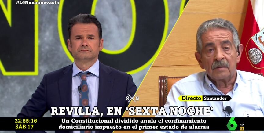 Miguel Ángel Revilla ha reconocido en laSexta Noche su "perplejidad" por la sentencia del Tribunal Constitucional que declara ilegal el estado de alarma aplicado por el Gobierno para frenar la pandemia de coronavirus: "Es un estado de alarma que fue votado por todos grupos parlamentarios, con la representación más amplia del país. Ahora me parece muy fariseo que algunos partidos digan que ya lo dijeron".