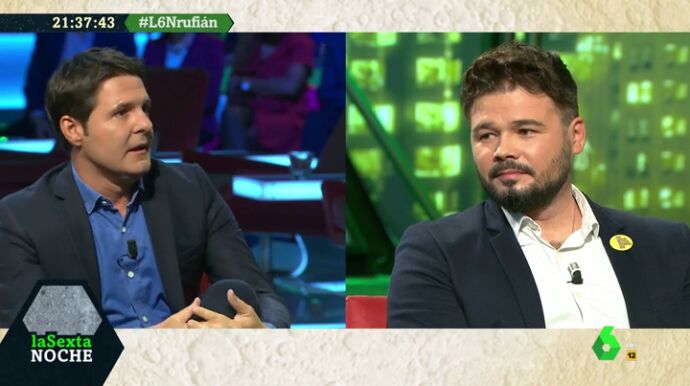 Gabriel Rufián ha reconocido en laSexta Noche que tiene "una relación cordial con Íñigo Errejón" y que han hablado "bastante durante la investidura". Al ser preguntado sobre el posible salto nacional de Errejón, Rufián tiene su opinión: "No sé lo que hará pero sospecho que se presentara".