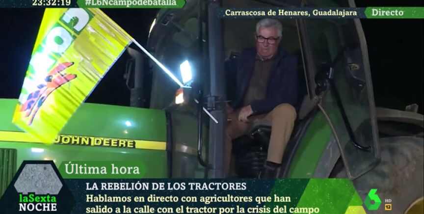 laSexta Noche ha asistido a una tractorada que se ha celebrado en plena noche en Carrascosa de Henares, Guadalajara. Allí, los agricultores se han reunido una vez más para protestar por las condiciones laborales y económicas que afronta el campo español en detrimento de otros sectores. Junto a ellos, los tractores se han convertido en todo un símbolo de la lucha campesina.
