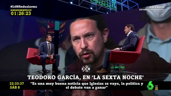 Teodoro García Egea, secretario general del PP, ha contado en laSexta Noche que cuando se enteró de que Pablo Iglesias dejaba la política pensó "que es una muy buena noticia, que la política española ganaba, y que el debate público va a ganar".