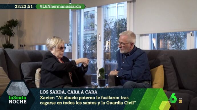En ese momento, Xavier Sardà ha indicado que su padre "venía de una familia de agricultores que lo perdieron todo". "A nuestro abuelo un día le metieron un tiro en la nuca porque, por lo visto, había blasfemado", a lo que Rosa María Sardà ha puntualizado que fue "porque era republicano".