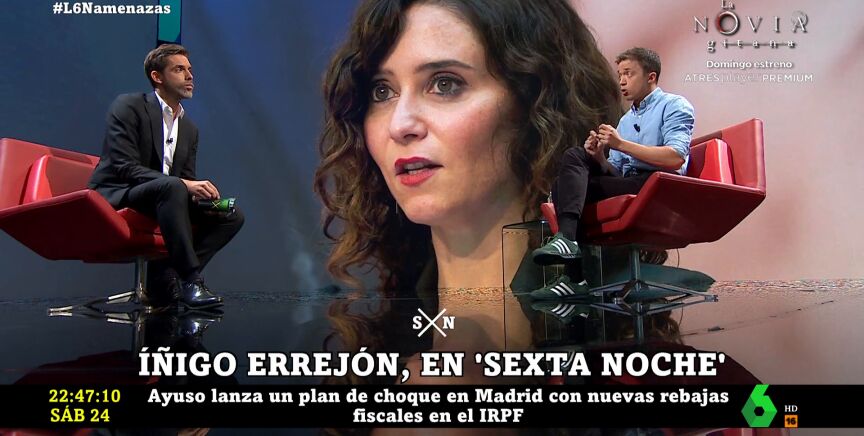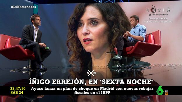 Íñigo Errejón ha visitado el plató de laSexta Noche, donde ha abordado diversos temas de actualidad. Entre ellos, la cuestión de la supresión del impuesto de patrimonio, así como las declaraciones de Isabel Díaz Ayuso en las que destacaba la necesidad de los impuestos, pero a la vez sacaba pecho asegurando que, con las rebajas fiscales, los madrileños han ahorrado dinero y "nos hemos convertido en la primera economía de España".