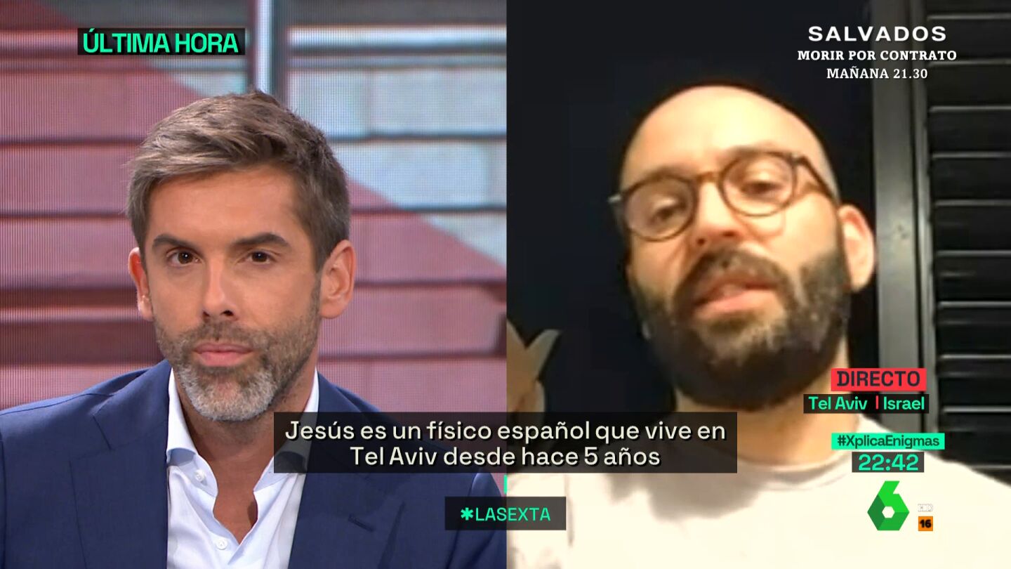 Jesús es un físico español que vive en Tel Aviv. "Nos levantamos con alarmas y explosiones y han sido intermitentes durante el día", relata en laSexta Xplica, tras el ataque masivo que ha lanzado Hamás este sábado contra Israel y que ha acabado desembocando en una guerra abierta con las milicias de la Franja de Gaza.