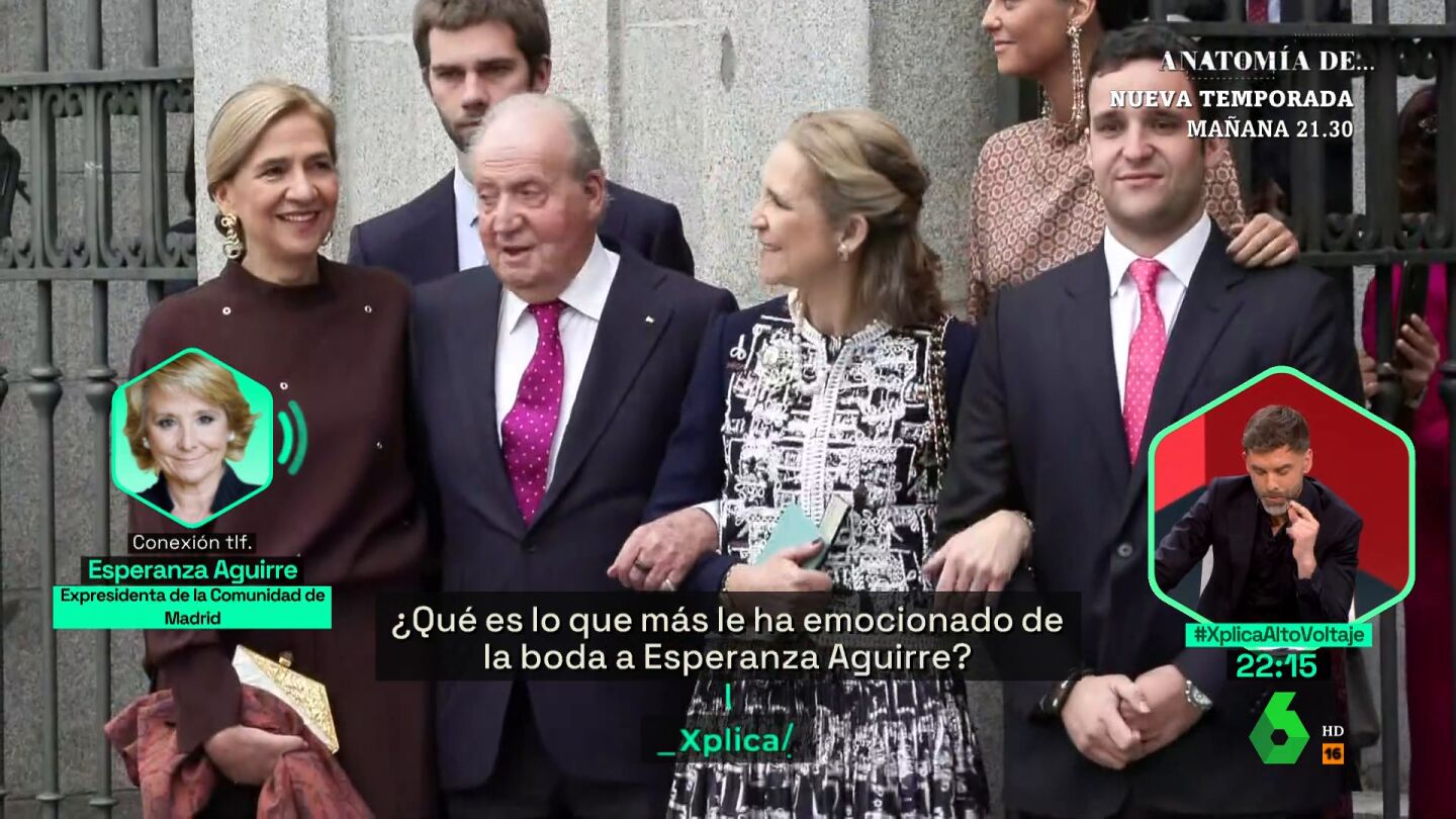 La ex presidenta de la Comunidad de Madrid ha desvelado ciertos aspectos de la celebración de la boda de Almeida, donde ha calificado de "emocionante" ver al rey emérito.